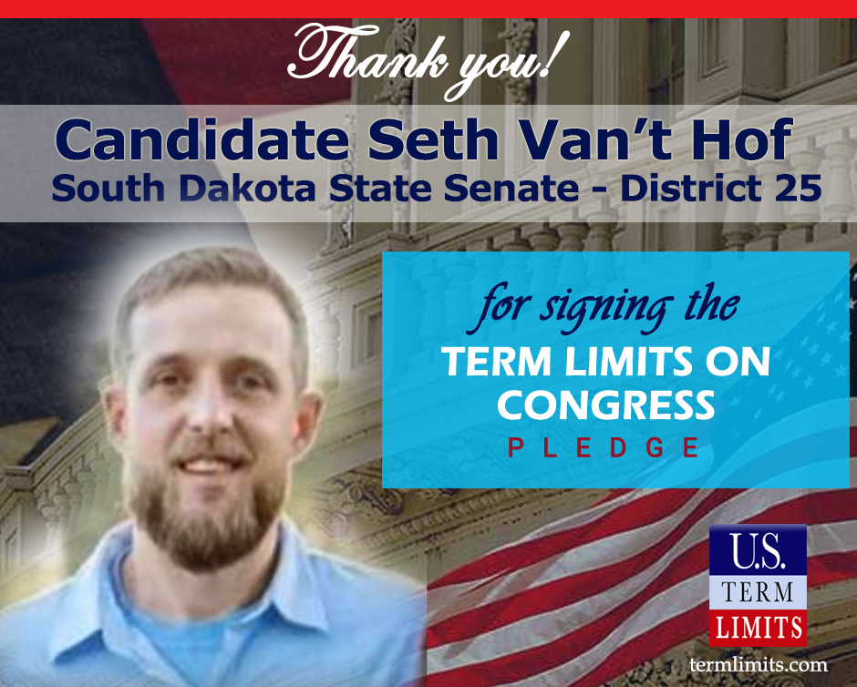 Washington, D.C. – U.S. Term Limits (USTL), the leader in the national, non-partisan movement to limit terms for elected officials, is gathering support from state lawmakers across the nation. Its mission is to get 34 states to apply for an amendment proposal convention specific to term limits on Congress. 2020 South Dakota state senate candidate, Seth Van’t Hof (district 25), has committed support for term limits on Congress by signing the Term Limits Convention pledge.