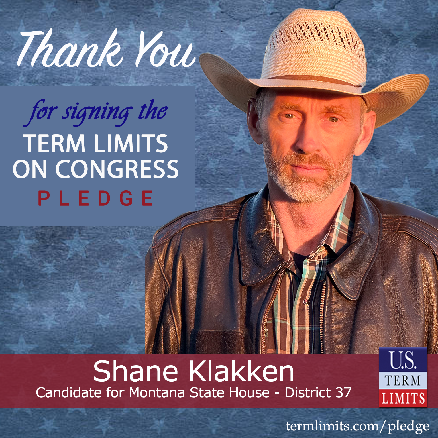 Circle, MT – U.S. Term Limits (USTL), the leader in the national, non-partisan movement to limit terms for elected officials, is gathering support from state lawmakers across the nation. Its mission is to get 34 states to apply for an amendment proposal convention specific to term limits on Congress. Montana state house candidate, Shane Klakken (district 37), has committed support for term limits on Congress by signing the term limits convention pledge. Previously, incumbent Rep. Jerry Schillinger also signed the pledge.