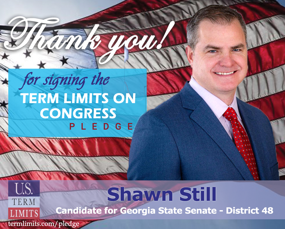 Atlanta, GA– U.S. Term Limits (USTL), the leader in the national, non-partisan movement to limit terms for elected officials, is gathering support from state lawmakers across the nation. Its mission is to get 34 states to apply for an amendment proposal convention specific to term limits on Congress. Georgia state senate candidate, Shawn Still (district 48), has committed support for term limits on Congress by signing the U.S. Term Limits pledge. Previously, candidate Kevin Grindlay also signed the pledge. The primary election is scheduled for May 24, 2022.
