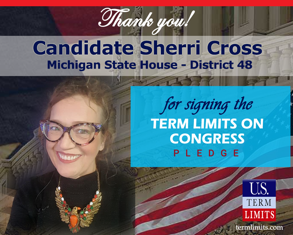 USTL President, Philip Blumel, commented on Cross’s pledge saying, “Sherri’s support of term limits shows that there are individuals who are willing to listen to the majority of voters who want term limits. America needs a Congress that will be served by citizen legislators, not career politicians.”