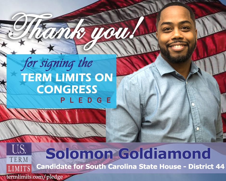 Charlotte, SC – U.S. Term Limits (USTL), the leader in the national, non-partisan movement to limit terms for elected officials, is gathering support from state lawmakers across the nation. Its mission is to get 34 states to apply for an amendment proposal convention specific to term limits on Congress. South Carolina state house candidate, Solomon Goldiamond (district 44) has committed support for term limits on Congress by signing the Term Limits Convention pledge. Goldiamond is the first signer in this race.