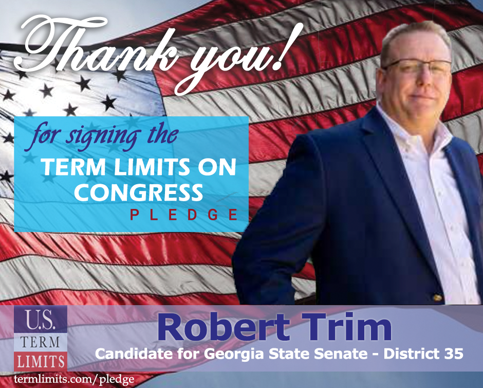 The U.S. Term Limits amendment pledge is provided to every announced candidate for federal office. It reads, “I pledge that as a member of Congress, I will cosponsor and vote for the U.S. Term Limits amendment of three (3) House terms and two (2) Senate terms and no longer limit.” The U.S. Term Limits constitutional amendment has been introduced in both the U.S. Senate by Senator Ted Cruz and his colleagues (SJR3) and the U.S. House by Representative Ralph Norman (HJR12).