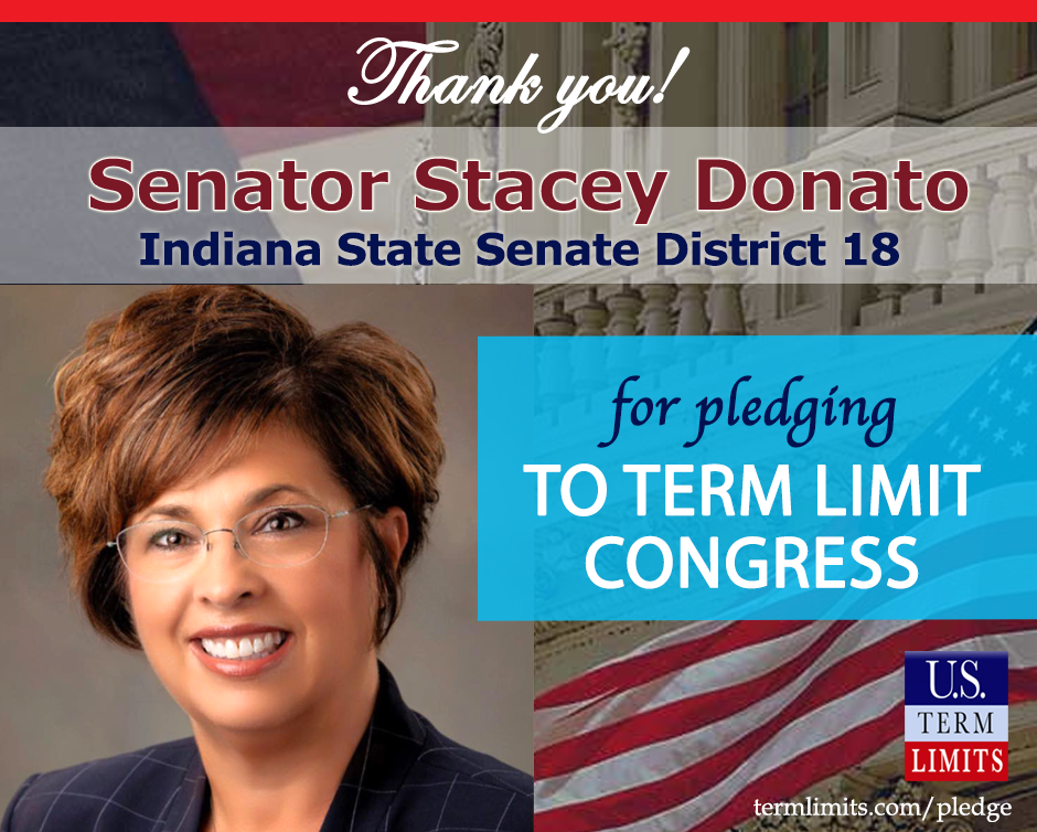Indianapolis, IN – U.S. Term Limits (USTL), the leader in the national, non-partisan movement to limit terms for elected officials, is gathering support from state lawmakers across the nation. Its mission is to get 34 states to apply for an amendment proposal convention specific to term limits on Congress. Indiana state Senator Stacey Donato (district 18), has committed support for term limits on Congress by signing the Term Limits Convention pledge.