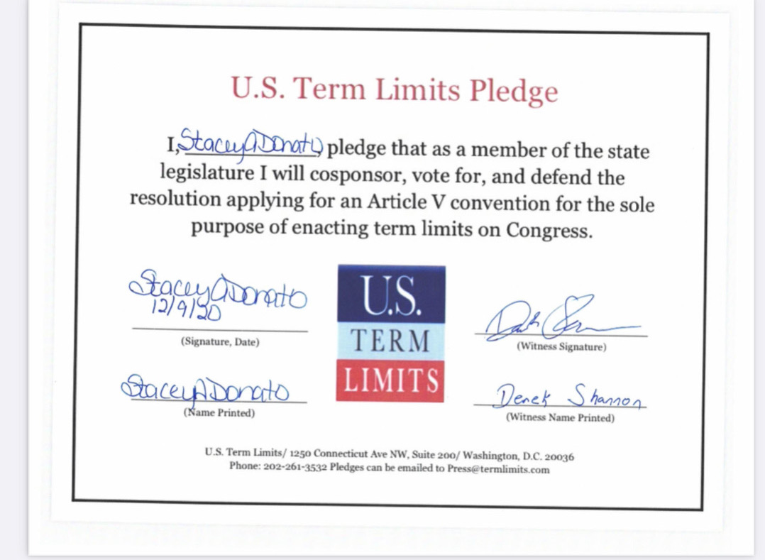 Senator Stacey Donato Pledges to Support Congressional Term Limits