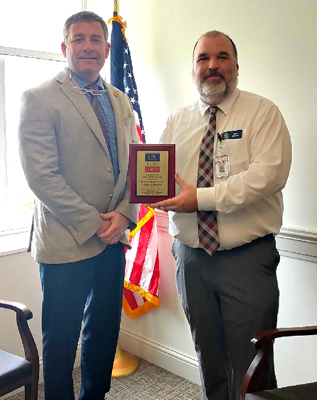 Aaron Dukette of USTL gave the representative the “Champion of Term Limits” wood plaque which reads, “In recognition of a steadfast commitment to restore citizen government through term limits.” Darby has pledged to support house joint resolution 8 (HJR8) which successfully passed through the lower chamber earlier this month. The convention bill does not set the specific length of term limits, rather, it simply starts a discussion among the states on what the ideal term limits of Congressmembers should be.