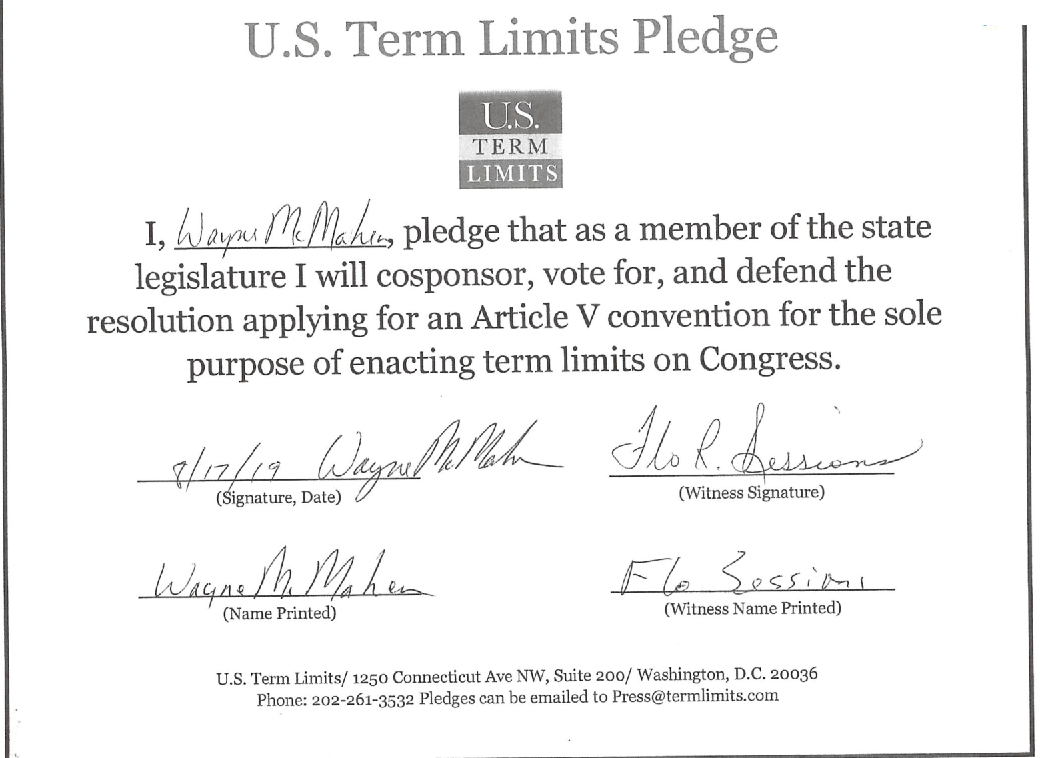 McMahen is in good company in his commitment. More than 40 state representatives have pledged to approve HCR51. These representatives realize that an overwhelming majority of their constituents want term limits on Congress. According to a recent poll by McLaughlin & Associates, 85% of likely voters in Louisiana support term limits on Congress, including strong support across partly lines. 94% of Republicans, 80% of Democrats, and 83% of independents support the reform.