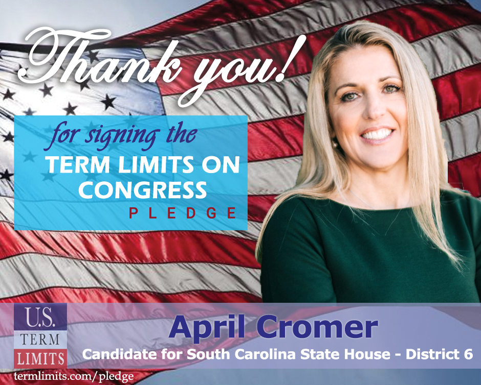 The U.S. Term Limits pledge is provided to candidates and members of state legislatures. It reads, “I pledge that, as a member of the state legislature, I will cosponsor, vote for, and defend the resolution applying for an Article V convention for the limited purpose of enacting term limits on Congress.”
