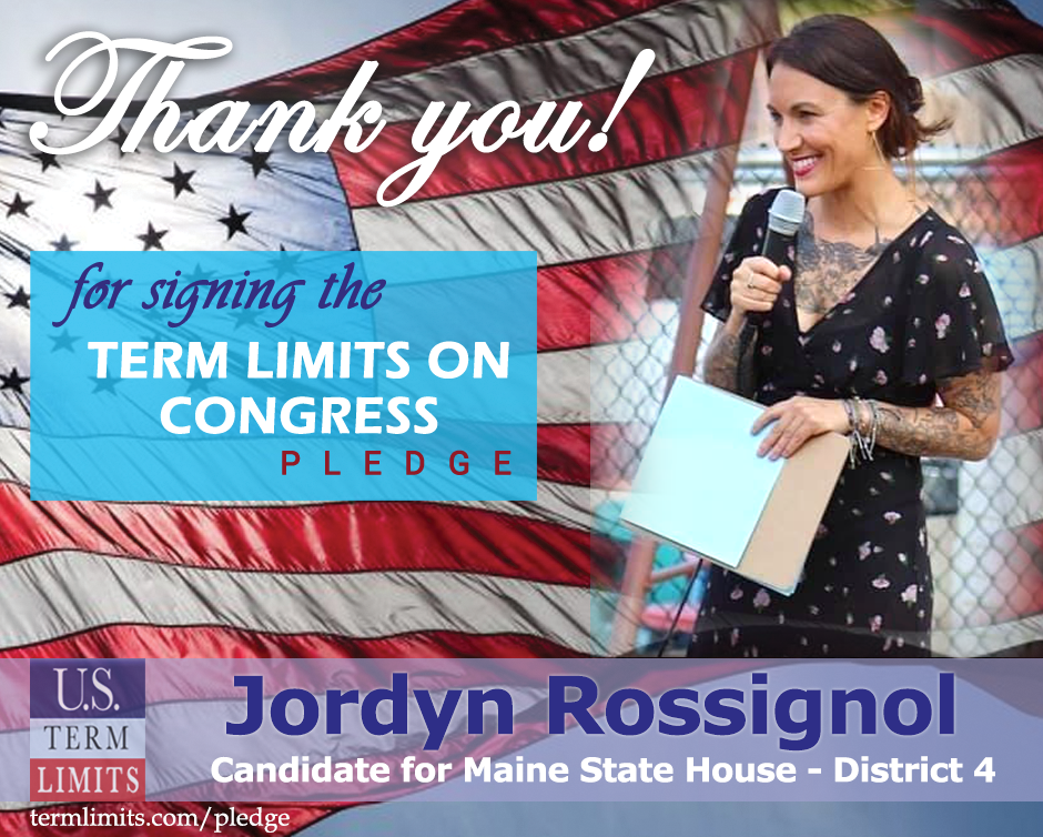 Portland, ME – U.S. Term Limits (USTL), the leader in the national, non-partisan movement to limit terms for elected officials, is gathering support from state lawmakers across the nation. Its mission is to get 34 states to apply for an amendment proposal convention specific to term limits on Congress. Maine state house candidate, Jordyn Rossignol (district 4) has committed support for term limits on Congress by signing the Term Limits Convention pledge.