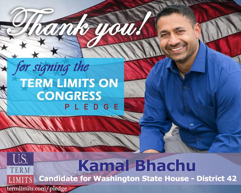 The U.S. Term Limits pledge is provided to candidates and members of state legislatures. It reads, “I pledge that, as a member of the state legislature, I will cosponsor, vote for, and defend the resolution applying for an Article V convention for the limited purpose of enacting term limits on Congress.”