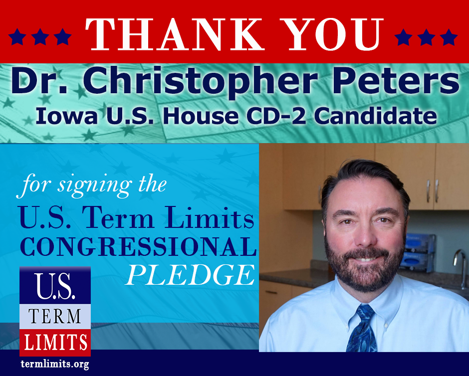 The U.S. Term Limits amendment pledge is provided to every announced candidate for federal office. It reads, “I pledge that as a member of Congress, I will cosponsor and vote for the U.S. Term Limits amendment of three (3) House terms and two (2) Senate terms and no longer limit.” The U.S. Term Limits constitutional amendment has been introduced in both the U.S. Senate by Senator Ted Cruz and his colleagues (SJR3) and the U.S. House by Representative Ralph Norman (HJR12).