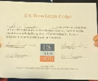 The U.S. Term Limits pledge is provided to candidates and members of state legislatures. It reads, “I pledge that, as a member of the state legislature, I will cosponsor, vote for, and defend the resolution applying for an Article V convention for the sole purpose of enacting term limits on Congress.”