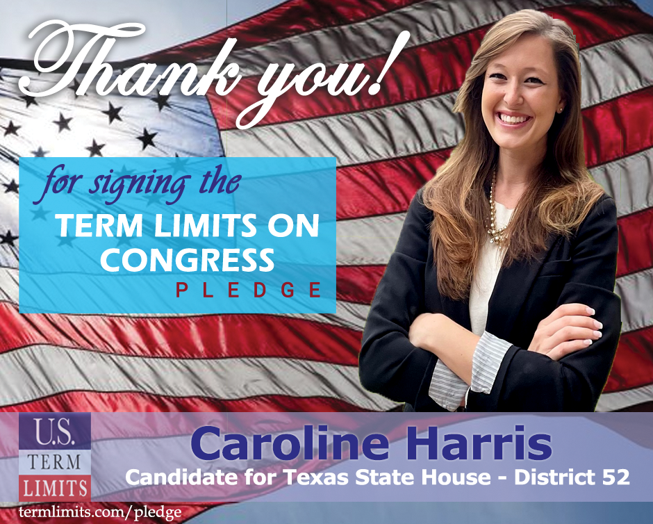 The U.S. Term Limits amendment pledge is provided to every announced candidate for federal office. It reads, “I pledge that as a member of Congress, I will cosponsor and vote for the U.S. Term Limits amendment of three (3) House terms and two (2) Senate terms and no longer limit.” The U.S. Term Limits constitutional amendment has been introduced in both the U.S. Senate by Senator Ted Cruz and his colleagues (SJR2) and the U.S. House by Representative Ralph Norman (HJR11).