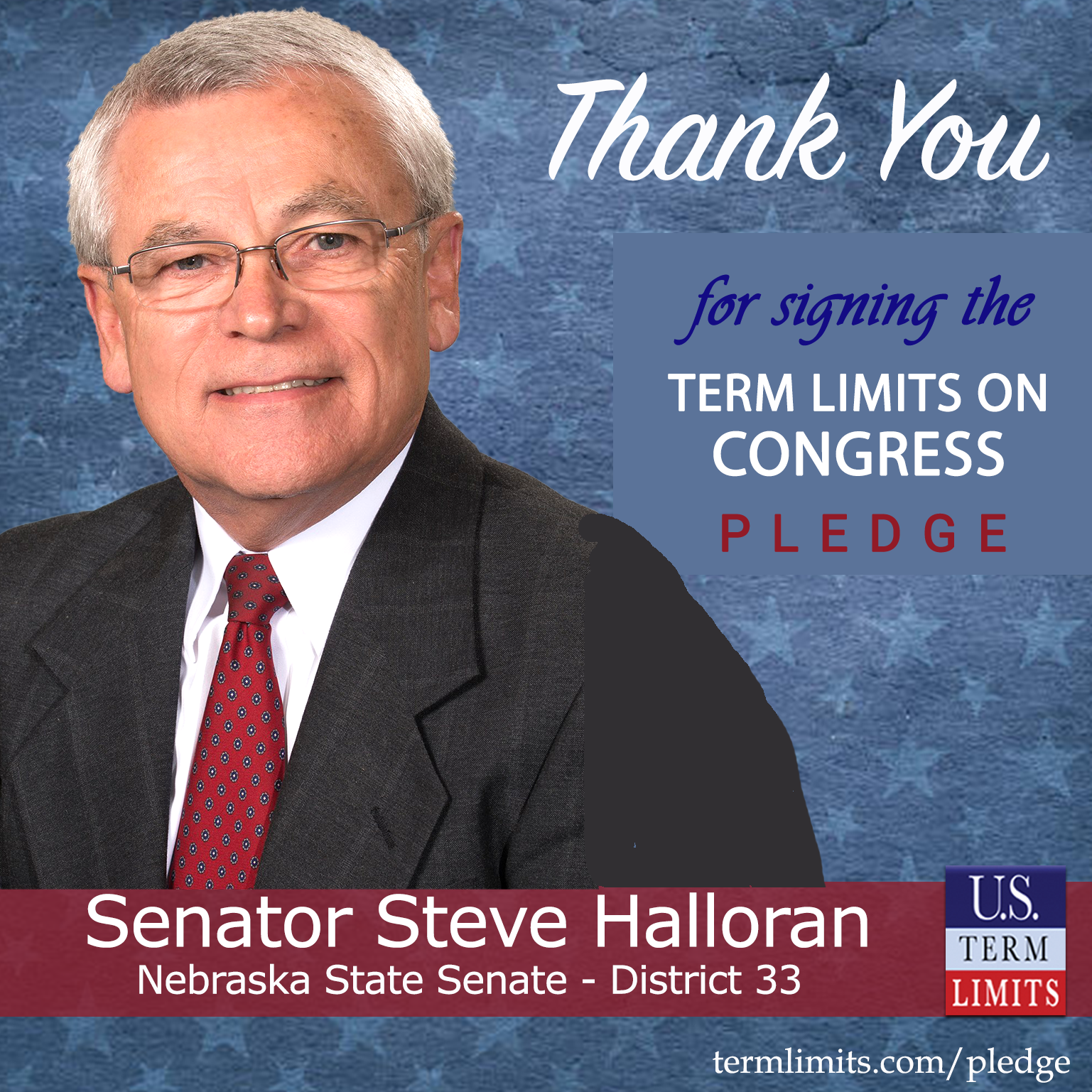 Lincoln, NE – U.S. Term Limits (USTL), the leader in the national, non-partisan movement to limit terms for elected officials, is gathering support from state lawmakers across the nation. Its mission is to get 34 states to apply for an amendment proposal convention specific to term limits on Congress. Nebraska state Senator Steve Halloran (District 33), has committed support for term limits on Congress by signing the term limits convention pledge.