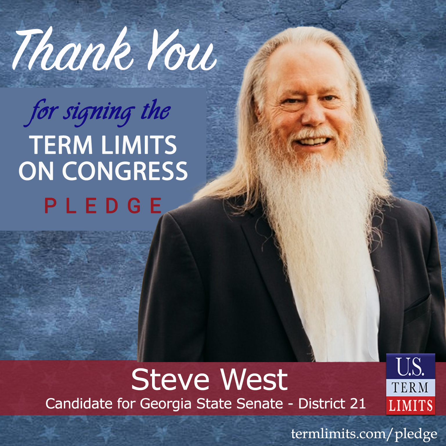 Canton, GA – U.S. Term Limits (USTL), the leader in the national, non-partisan movement to limit terms for elected officials, is gathering support from state lawmakers across the nation. Its mission is to get 34 states to apply for an amendment proposal convention specific to term limits on Congress. 2025 Georgia state senate candidate, Steve West (district 21), has committed support for term limits on Congress by signing the term limits convention pledge. West is the first signer in this race. The special general election is scheduled for August 26, 2025.