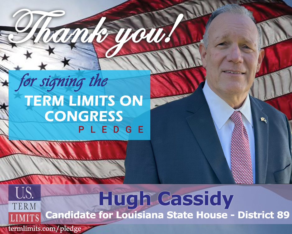 The U.S. Term Limits pledge is provided to candidates and members of state legislatures. It reads, “I pledge that, as a member of the state legislature, I will cosponsor, vote for, and defend the resolution applying for an Article V convention for the limited purpose of enacting term limits on Congress.”
