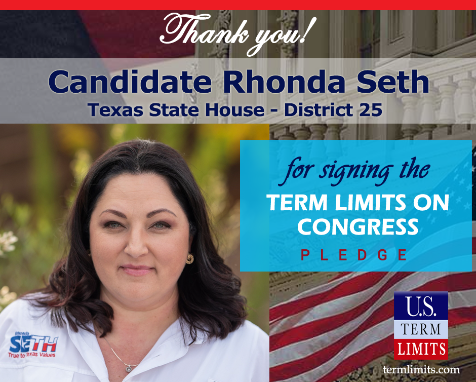 The U.S. Term Limits Amendment Pledge is provided to every announced candidate for federal office. It reads, “I pledge that as a member of Congress I will co-sponsor and vote for the U.S. Term Limits amendment of three (3) House terms and two (2) Senate terms and no longer limit.” The U.S. Term Limits Constitutional Amendment has been introduced in both the U.S. Senate by Senator Ted Cruz (R-TX) and the House of Representatives by Representative Ron DeSantis (R-FL).