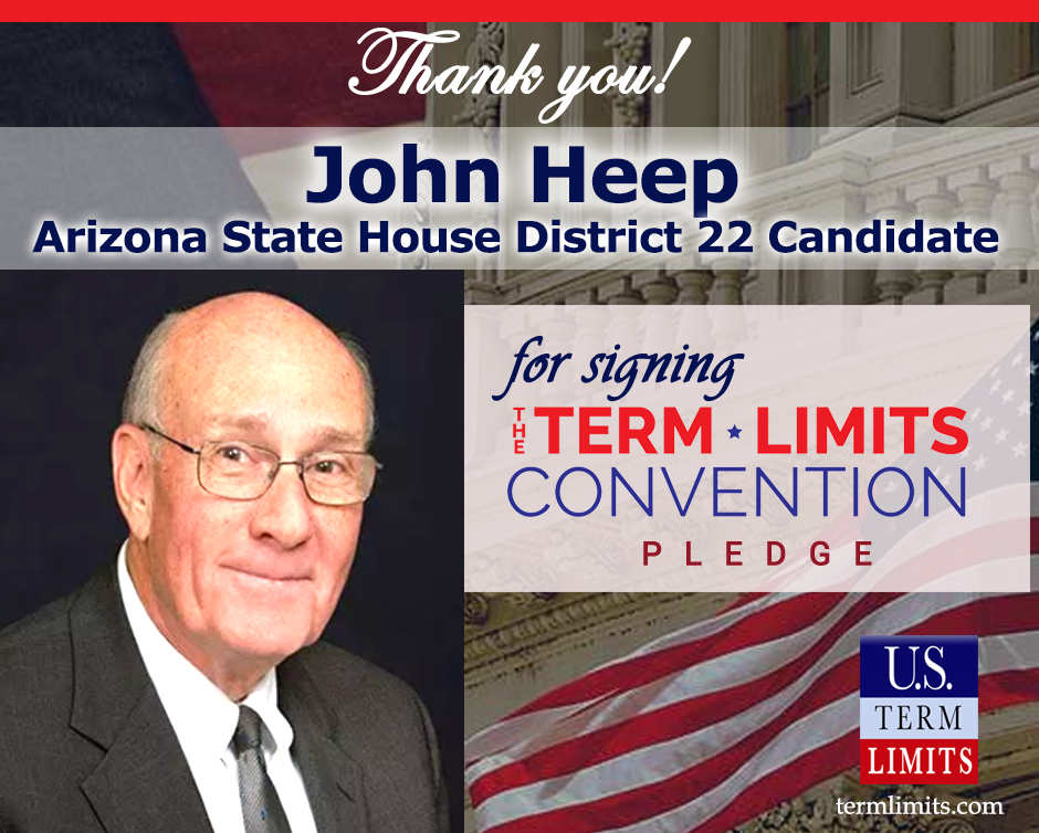 The U.S. Term Limits Amendment Pledge is provided to every announced candidate for federal office. It reads, “I pledge that as a member of Congress I will co-sponsor and vote for the U.S. Term Limits amendment of three (3) House terms and two (2) Senate terms and no longer limit.” The U.S. Term Limits Constitutional Amendment has been introduced in both the U.S. House by Senator Ted Cruz (R-TX) and the House of Representatives by Representative Ron DeSantis (R-FL).