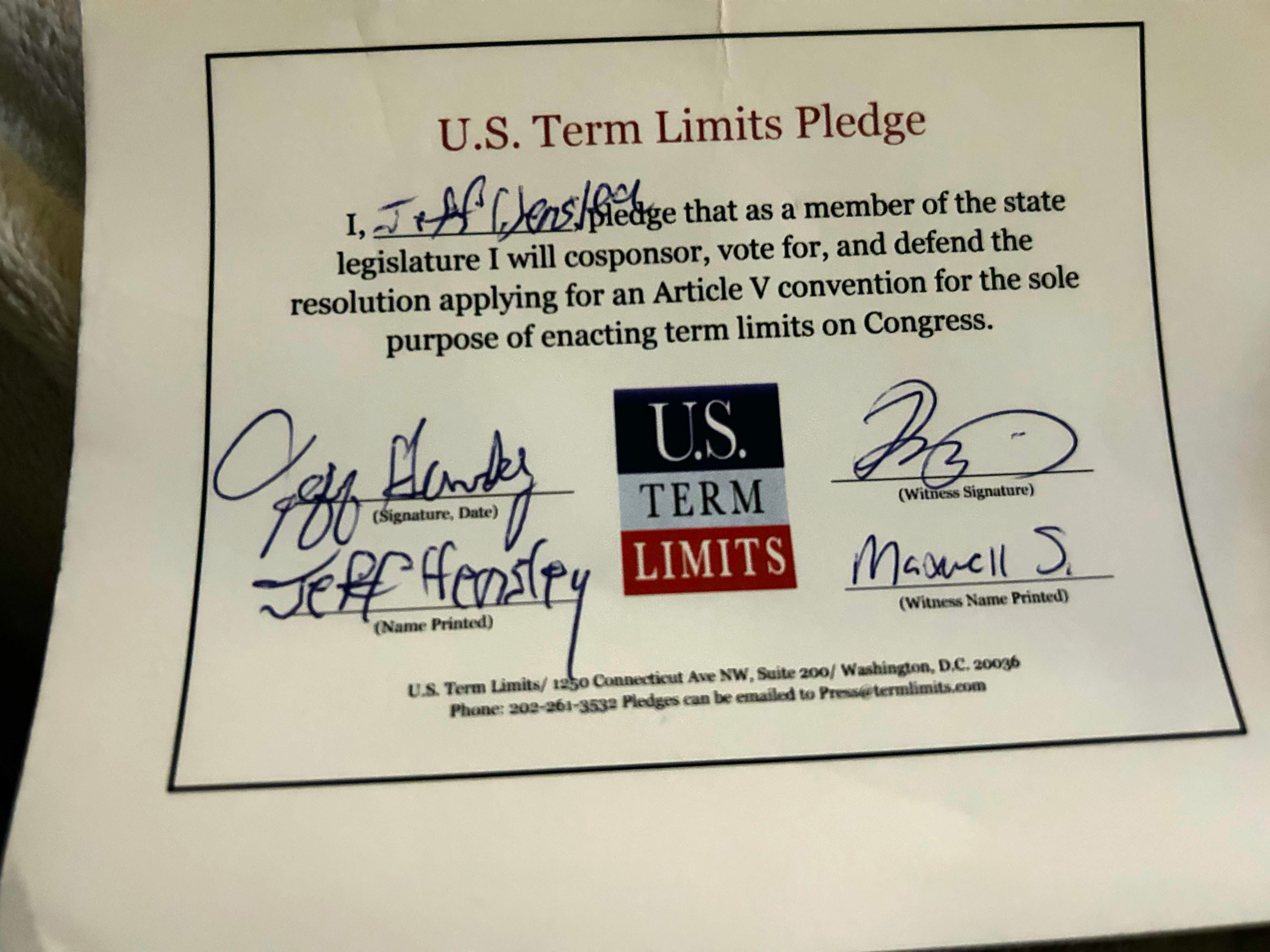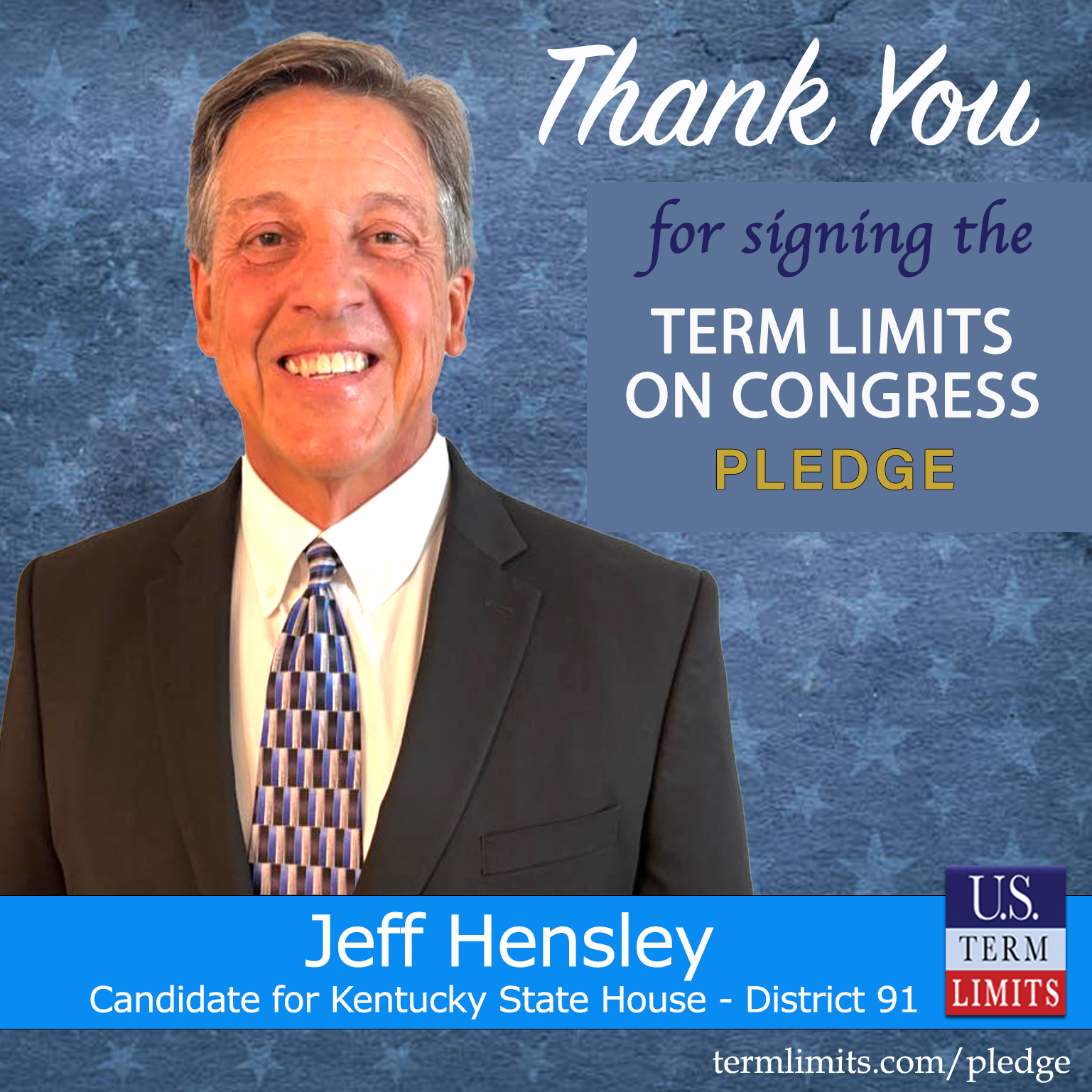 Irvine, KY – U.S. Term Limits (USTL), the leader in the national, non-partisan movement to limit terms for elected officials, is gathering support from state lawmakers across the nation. Its mission is to get 34 states to apply for an amendment proposal convention specific to term limits on Congress. 2026 Kentucky state house candidate, Jeff Hensley (district 91), has committed support for term limits on Congress by signing the term limits convention pledge. Previously, candidates Darrell Billings and David Johnson previously signed the pledge.