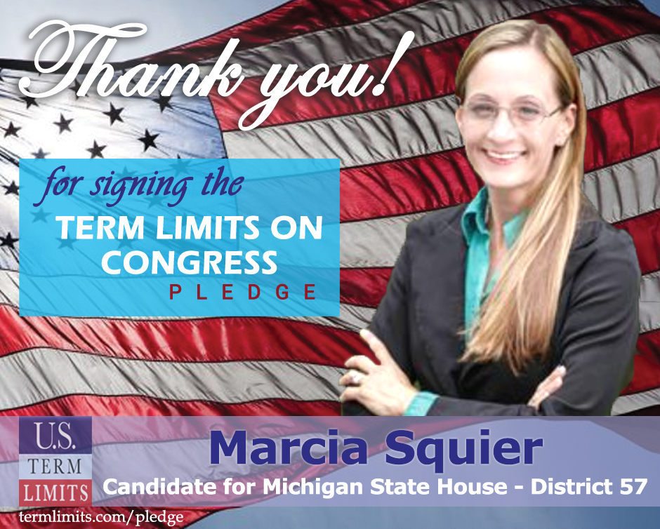 The U.S. Term Limits amendment pledge is provided to every announced candidate for federal office. It reads, “I pledge that as a member of Congress, I will cosponsor and vote for the U.S. Term Limits amendment of three (3) two-year House terms and two (2) six-year Senate terms and no longer limit.”