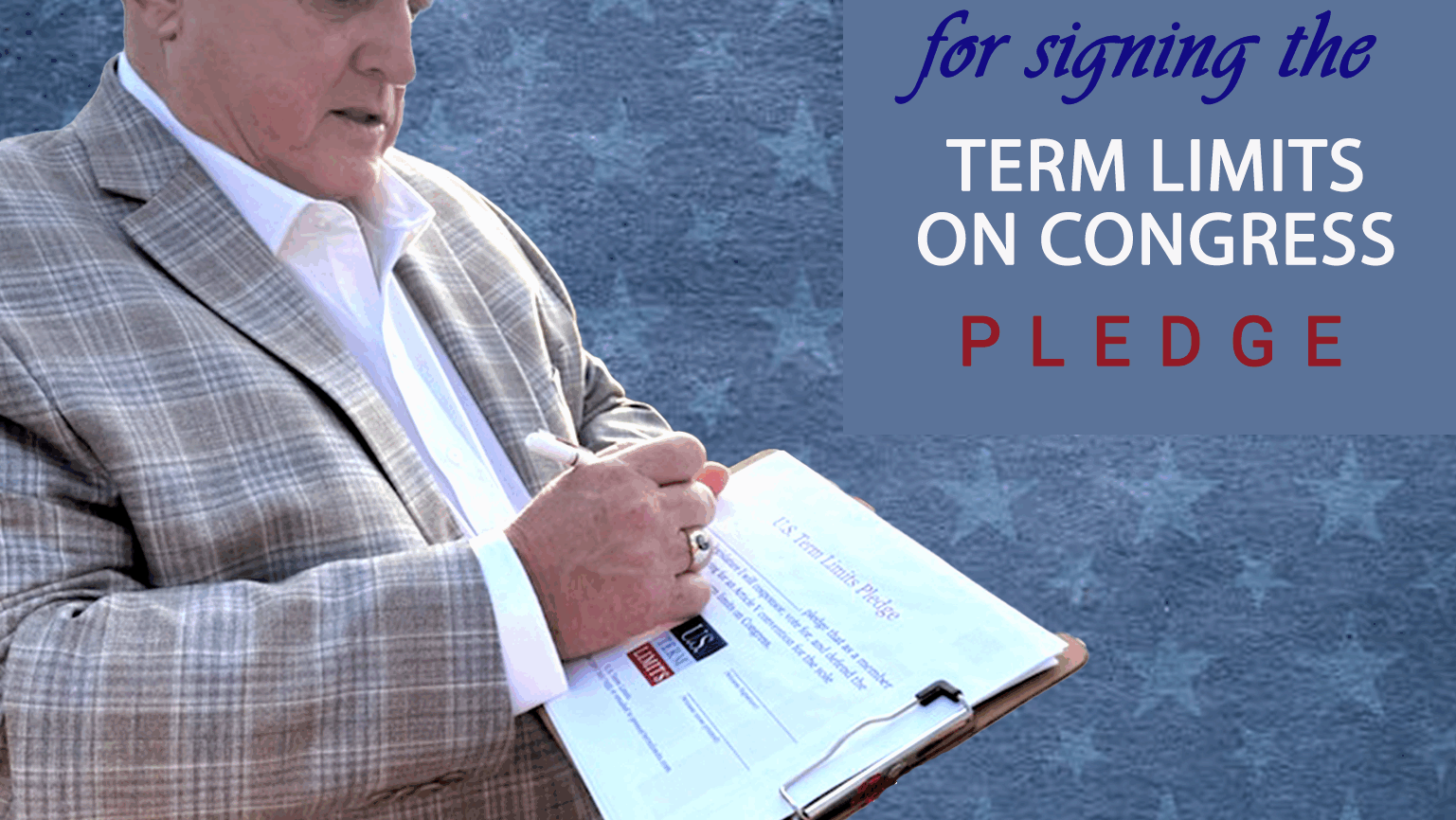 The U.S. Term Limits amendment pledge is provided to every announced candidate for federal office. It reads, “I pledge that as a member of Congress, I will cosponsor and vote for the U.S. Term Limits amendment of three (3) two-year House terms and two (2) six-year Senate terms and no longer limit.”