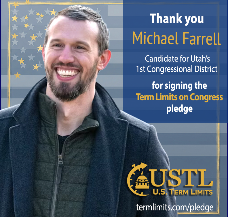 Washington D.C. – U.S. Term Limits (USTL), the leader in the non-partisan national movement to limit terms for elected officials, praises 2026 U.S. House of Representatives candidate for Utah, Michael Farrell (district 1), for signing the pledge for an amendment to term limit Congress. Previously, candidate Kathleen Riebe and incumbent Rep. Blake Moore also signed.