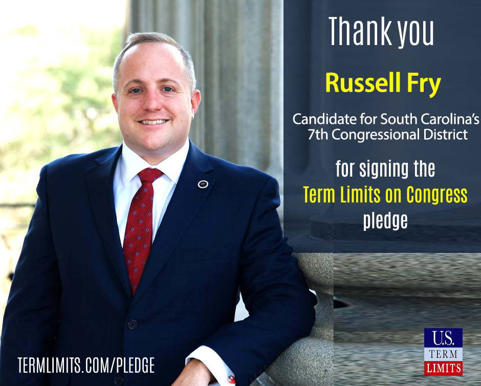 Washington D.C. – U.S. Term Limits (USTL), the leader in the non-partisan national movement to limit terms for elected officials, praises 2022 U.S. house candidate for South Carolina, Russell Fry (district 7), for signing the pledge for an amendment to term limit Congress. Previously, candidates Barbara Arthur and Ken Richardson also signed the pledge.