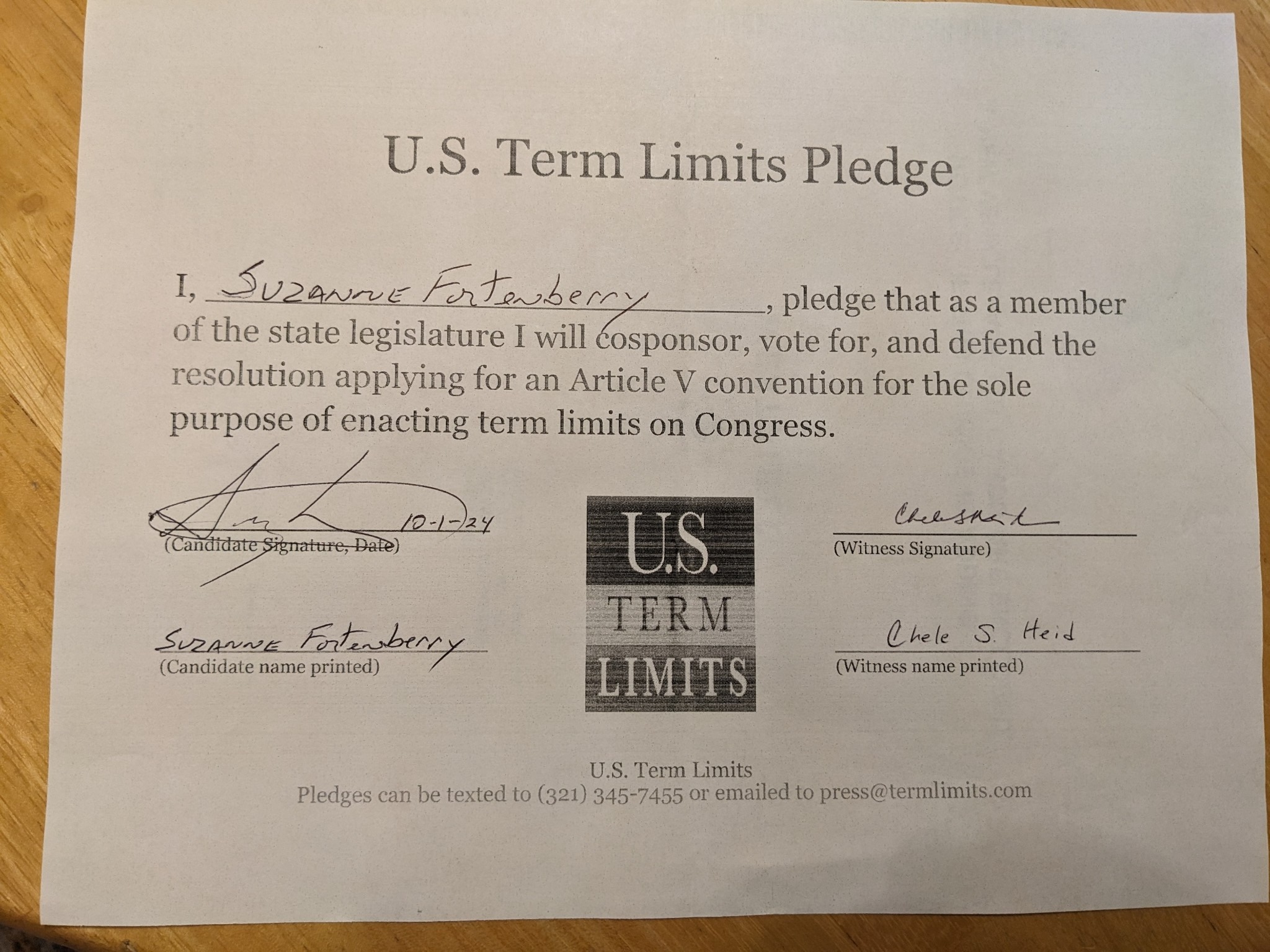 Suzanne Fortenberry Pledges to Support Congressional Term Limits