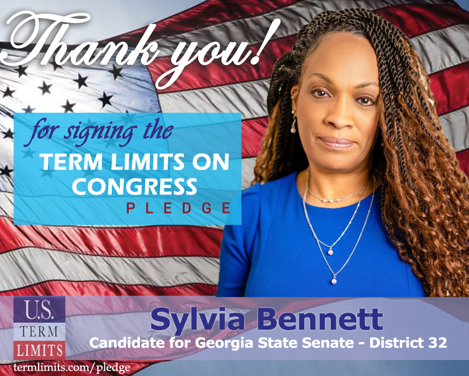 Marietta, GA – U.S. Term Limits (USTL), the leader in the national, non-partisan movement to limit terms for elected officials, is gathering support from state lawmakers across the nation. Its mission is to get 34 states to apply for an amendment proposal convention specific to term limits on Congress. Georgia state senate candidate, Sylvia Bennett (district 32) has committed support for term limits on Congress by signing the Term Limits Convention pledge.