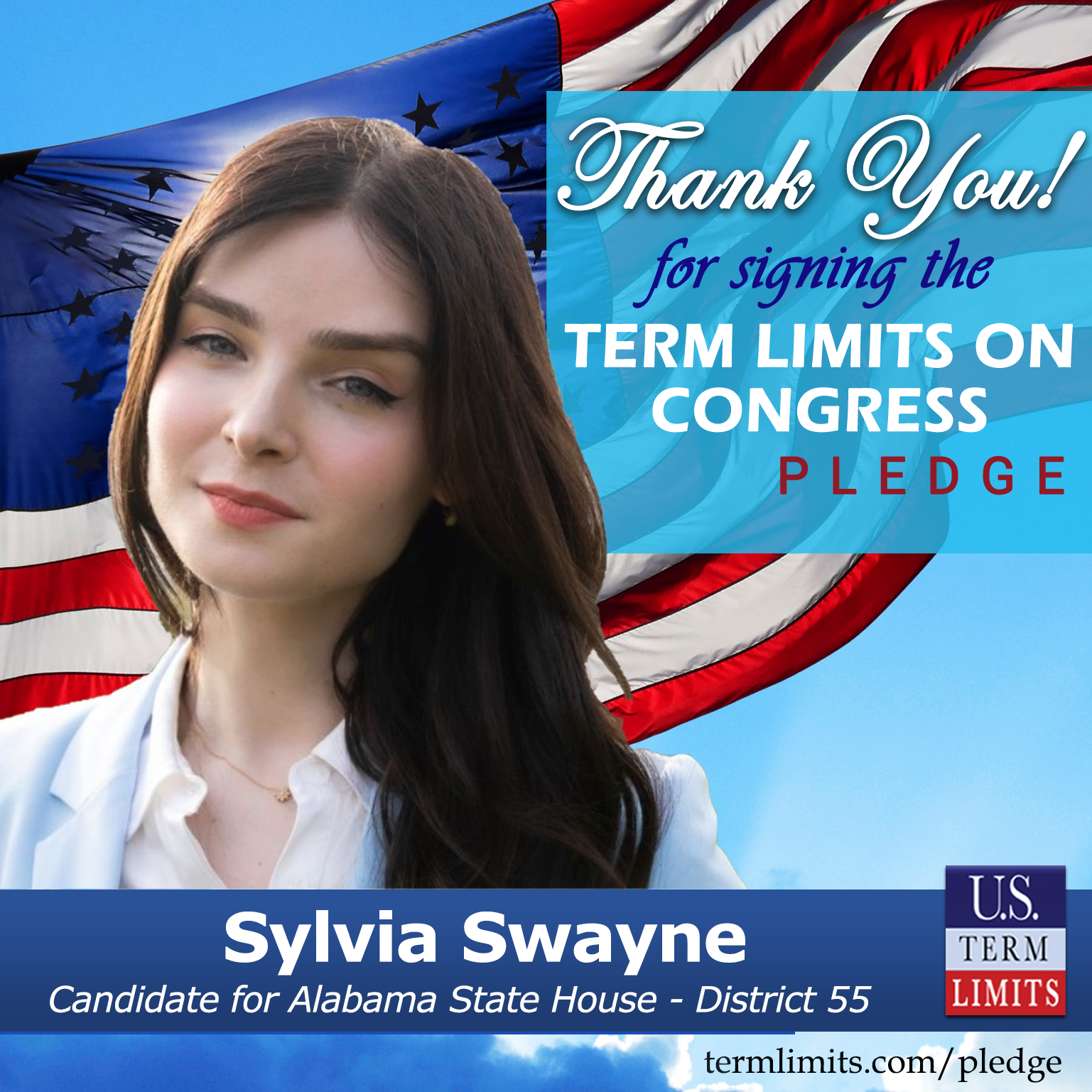 Birmingham, AL – U.S. Term Limits (USTL), the leader in the national, non-partisan movement to limit terms for elected officials, is gathering support from state lawmakers across the nation. Its mission is to get 34 states to apply for an amendment proposal convention specific to term limits on Congress. Alabama state house candidate, Sylvia Swayne (District 55), has committed support for term limits on Congress by signing the Term Limits Convention pledge. The special primary election is scheduled for September 26, 2023.