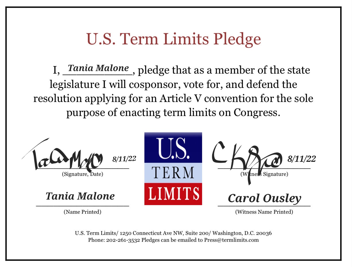 Tania Malone Pledges to Support Congressional Term Limits
