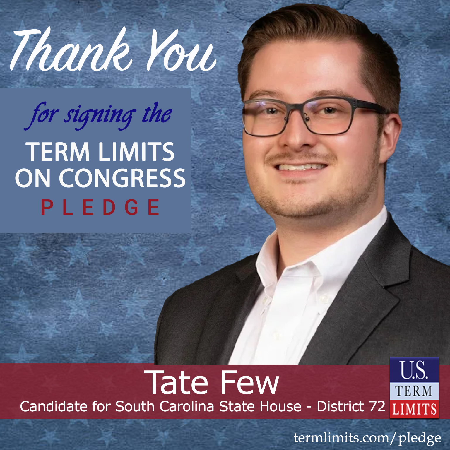 USTL President, Philip Blumel, commented on Few’s pledge saying, “Tate’s strong support of term limits shows that there are individuals who are willing to listen to the majority of voters who want term limits. America needs a Congress that will be served by citizen legislators, not career politicians.”
