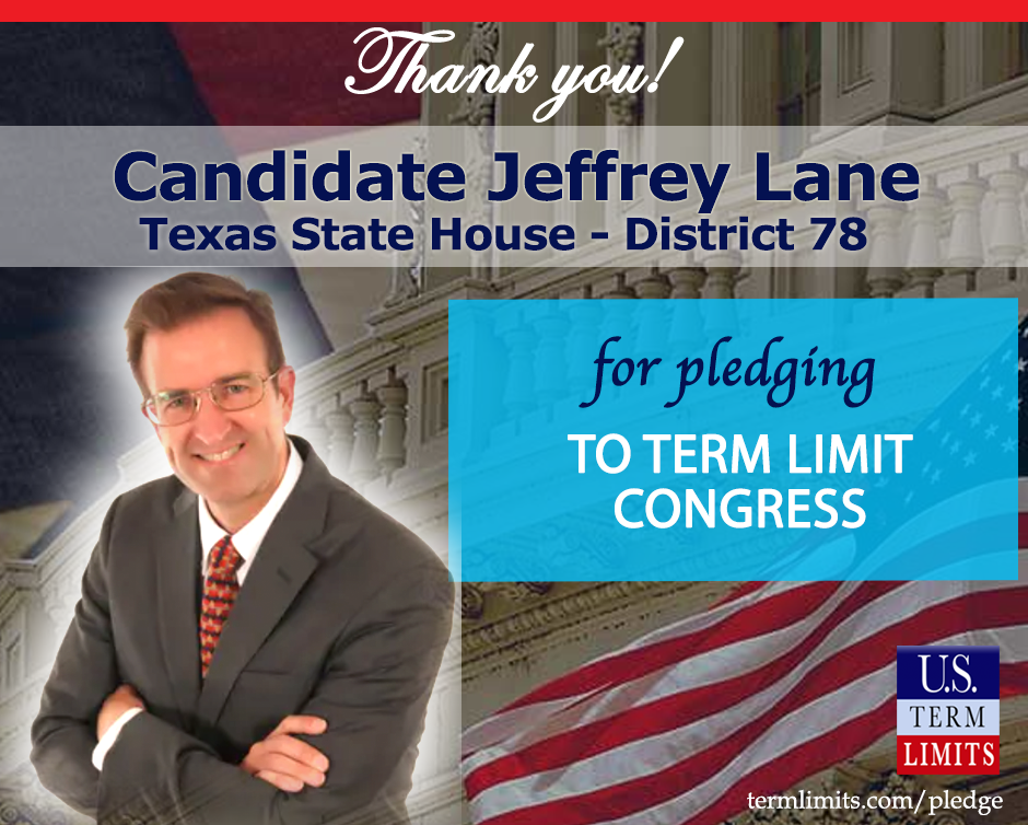 The U.S. Term Limits pledge is provided to candidates and members of state legislatures. It reads, “I pledge that, as a member of the state legislature, I will cosponsor, vote for, and defend the resolution applying for an Article V convention for the limited purpose of enacting term limits on Congress.”