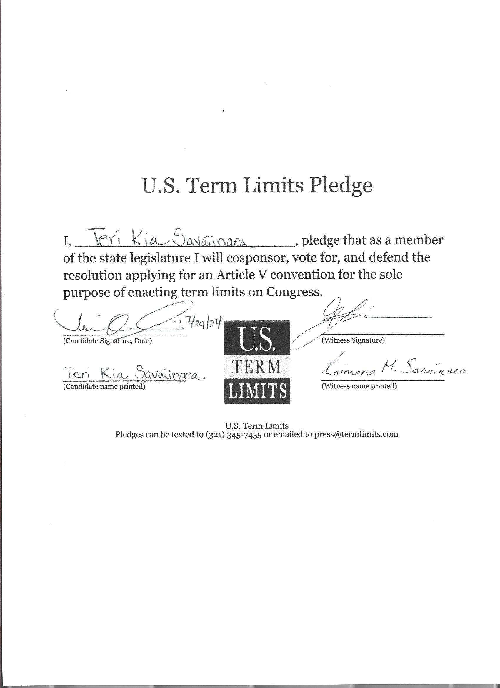 Teri Savaiinaea Pledges to Support Congressional Term Limits