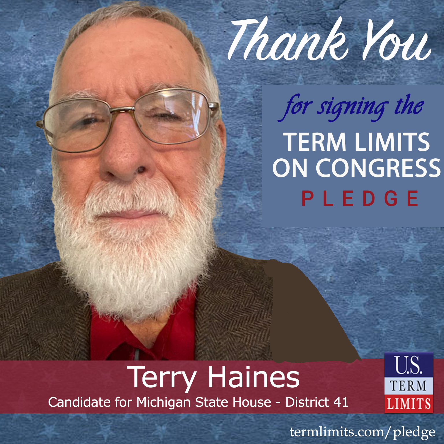 USTL President, Philip Blumel, commented on Haines’s pledge saying, “Terry’s strong support of term limits shows that there are individuals who are willing to listen to the majority of voters who want term limits. America needs a Congress that will be served by citizen legislators, not career politicians.”