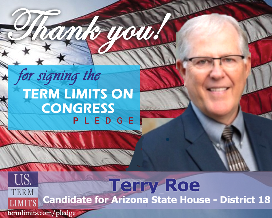 Phoenix, AZ – U.S. Term Limits (USTL), the leader in the national, non-partisan movement to limit terms for elected officials, is gathering support from state lawmakers across the nation. Its mission is to get 34 states to apply for an amendment proposal convention specific to term limits on Congress. Arizona state house candidate, Terry Roe (district 18) has committed support for term limits on Congress by signing the Term Limits Convention pledge. Previously, candidates David Richardson, Jim Chaston and Peter McMillan also signed the pledge.