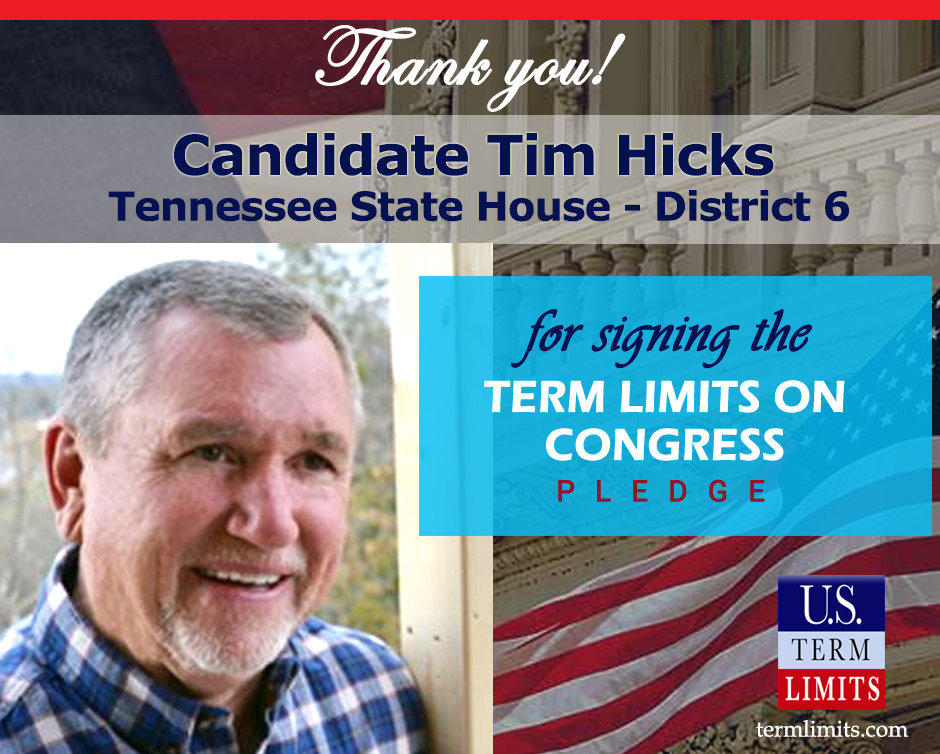 Washington, D.C. – U.S. Term Limits (USTL), the leader in the national, non-partisan movement to limit terms for elected officials, is gathering support from state lawmakers across the nation. Its mission is to get 34 states to apply for an amendment proposal convention specific to term limits on Congress. 2020 Tennessee state house candidate Tim Hicks (district 6), has committed support for term limits on Congress by signing the Term Limits Convention pledge. Hicks is the first signer in this race. The primary election is scheduled for August 6, 2020.