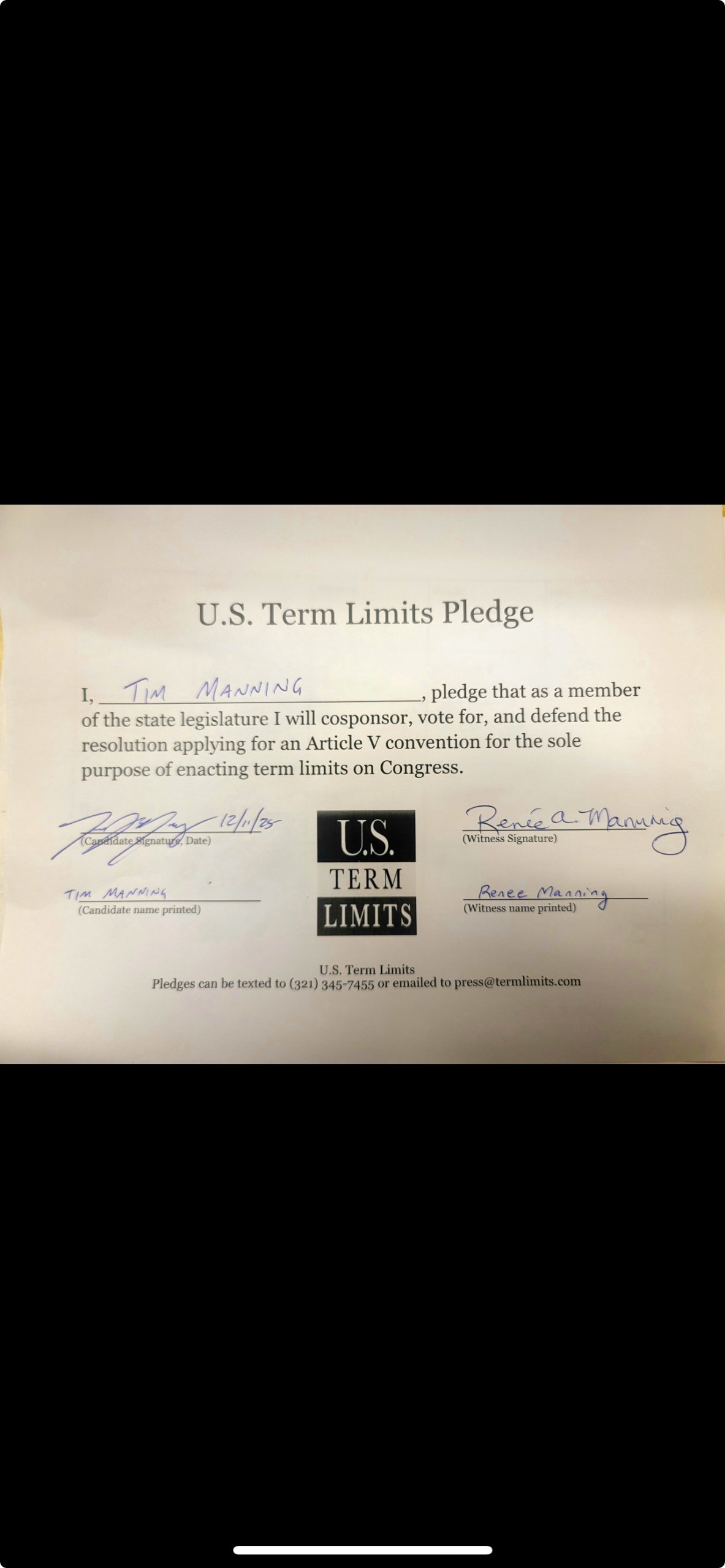 Tim Manning Pledges to Support Congressional Term Limits