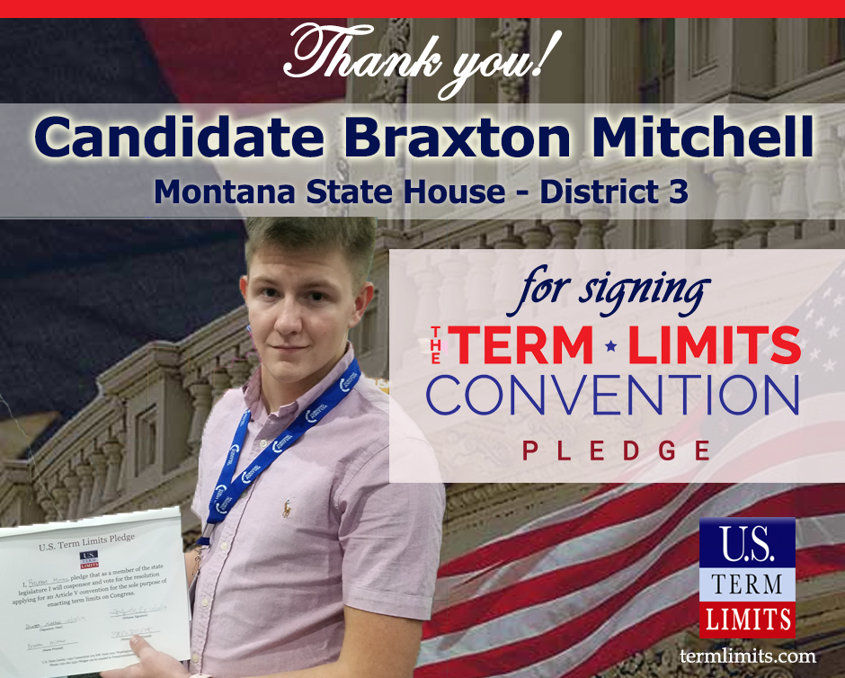 The U.S. Term Limits pledge is provided to candidates and members of state legislatures. It reads, “I pledge that, as a member of the state legislature, I will support and vote for the resolution applying for an Article V convention for the limited purpose of enacting term limits on Congress.”