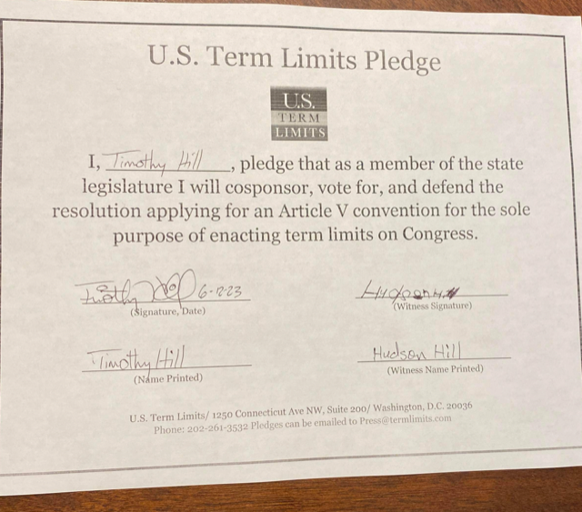 Rep. Timothy Hill Pledges to Support Congressional Term Limits