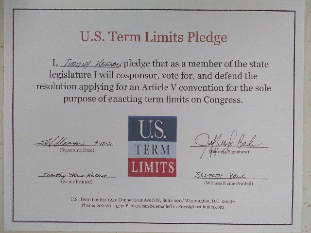 Timothy Keenan Pledges to Support Congressional Term Limits