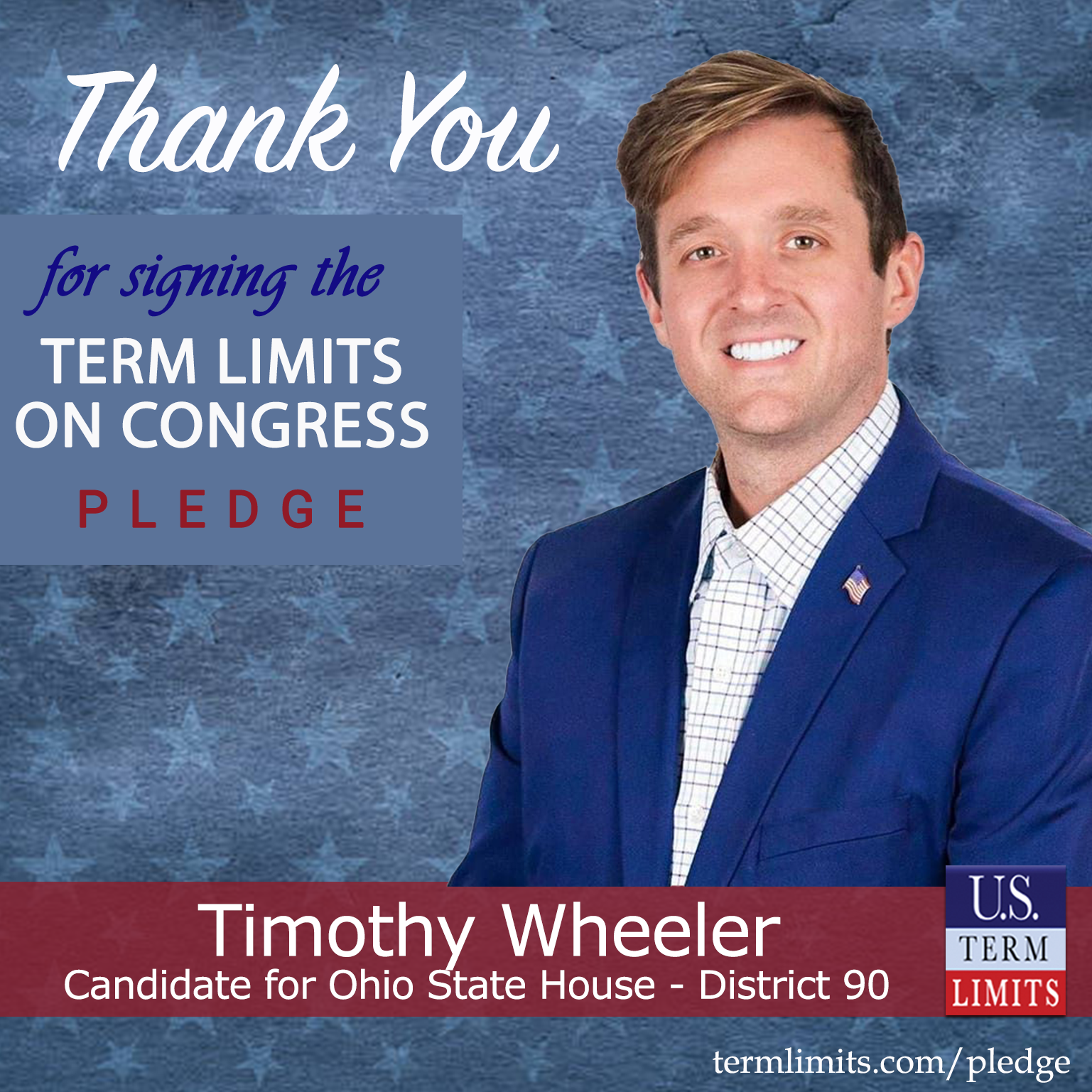 Columbus, OH – U.S. Term Limits (USTL), the leader in the national, non-partisan movement to limit terms for elected officials, is gathering support from state lawmakers across the nation. Its mission is to get 34 states to apply for an amendment proposal convention specific to term limits on Congress. Ohio state house candidate, Timothy Wheeler (District 90), has committed support for term limits on Congress by signing the term limits convention pledge. Previously, Rep. Justin Pizzulli and candidates Kate Nunnelley and Gina Collinsworth also signed the pledge.