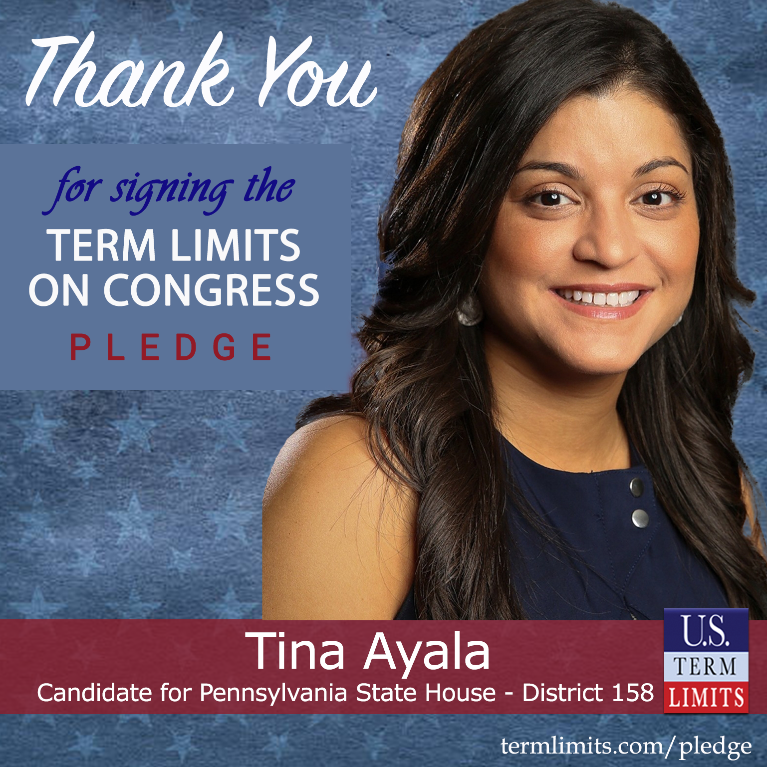Kennett Square, PA – U.S. Term Limits (USTL), the leader in the national, non-partisan movement to limit terms for elected officials, is gathering support from state lawmakers across the nation. Its mission is to get 34 states to apply for an amendment proposal convention specific to term limits on Congress. Pennsylvania state house candidate, Tina Ayala (district 158), has committed support for term limits on Congress by signing the term limits convention pledge.