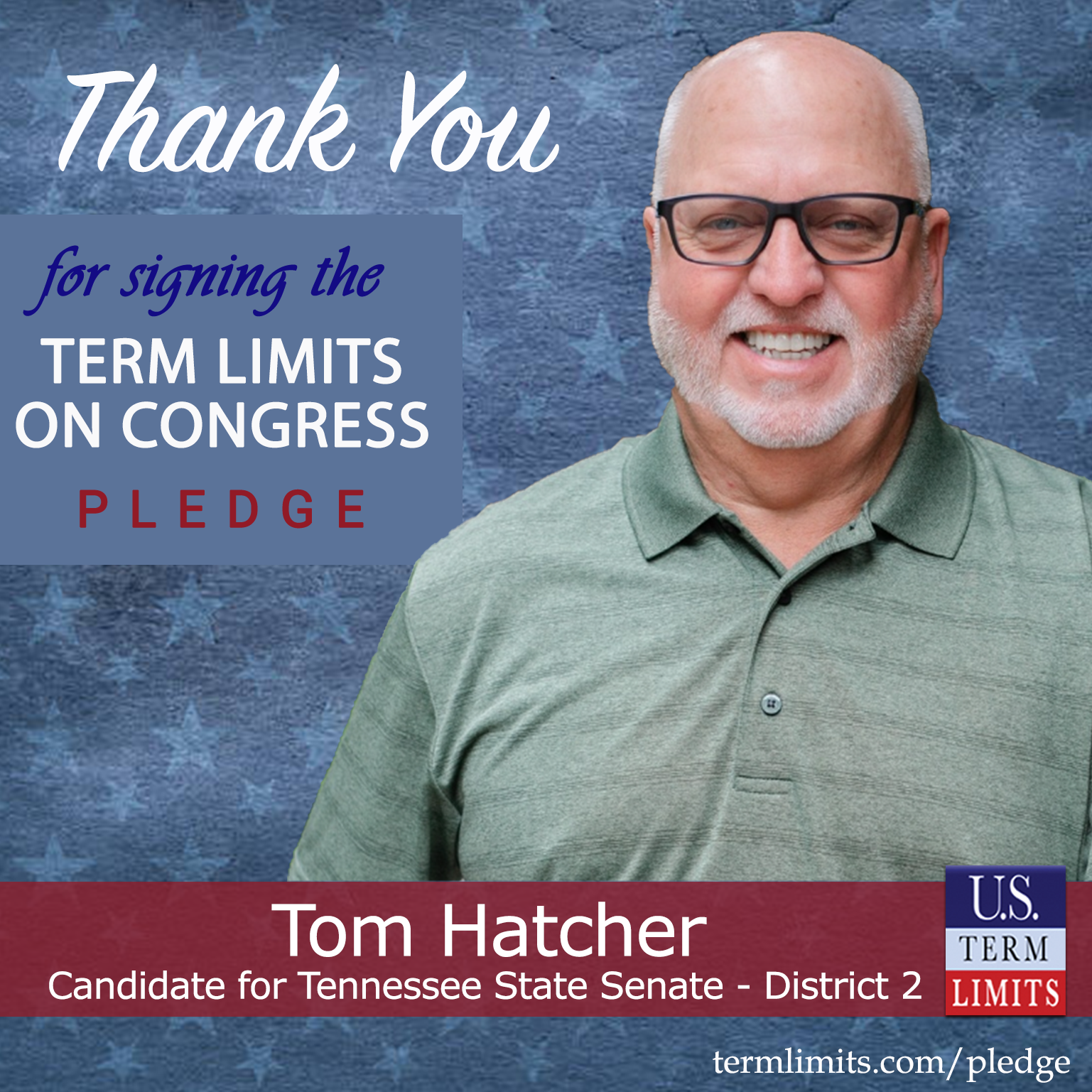 Maryville, TN – U.S. Term Limits (USTL), the leader in the national, non-partisan movement to limit terms for elected officials, is gathering support from state lawmakers across the nation. Its mission is to get 34 states to apply for an amendment proposal convention specific to term limits on Congress. Tennessee state senate candidate, Tom Hatcher (District 2), has committed support for term limits on Congress by signing the term limits convention pledge. Hatcher is the first signer in this race.