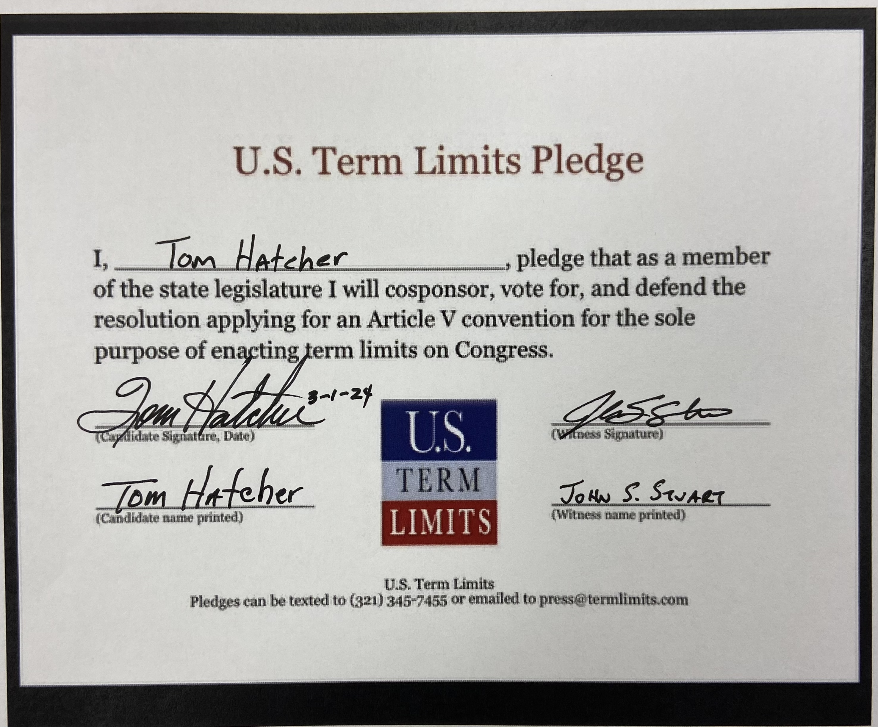 Tom Hatcher Pledges to Support Congressional Term Limits