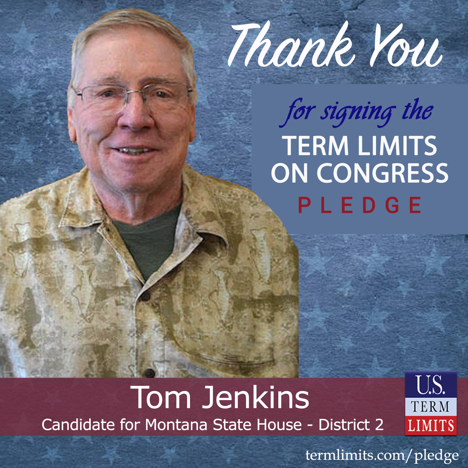 Eureka, MT – U.S. Term Limits (USTL), the leader in the national, non-partisan movement to limit terms for elected officials, is gathering support from state lawmakers across the nation. Its mission is to get 34 states to apply for an amendment proposal convention specific to term limits on Congress. Montana state house candidate, Tom Jenkins (District 2), has committed support for term limits on Congress by signing the Term Limits Convention Pledge.