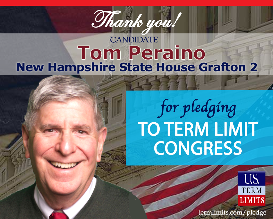 Manchester, NH – U.S. Term Limits (USTL), the leader in the national, non-partisan movement to limit terms for elected officials, is gathering support from state lawmakers across the nation. Its mission is to get 34 states to apply for an amendment proposal convention specific to term limits on Congress. New Hampshire state house candidate, Tom Peraino (Grafton 2), has committed support for term limits on Congress by signing the Term Limits Convention pledge.