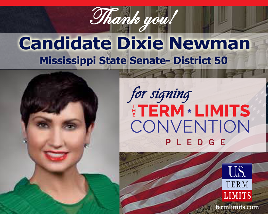 The U.S. Term Limits amendment pledge is provided to every announced candidate for federal office. It reads, “I pledge that as a member of Congress, I will cosponsor and vote for the U.S. Term Limits amendment of three (3) House terms and two (2) Senate terms and no longer limit.” The U.S. Term Limits constitutional amendment has been introduced in both the U.S. Senate by Senator Ted Cruz (SJR1) and the U.S. House by Representative Francis Rooney (HJR20).