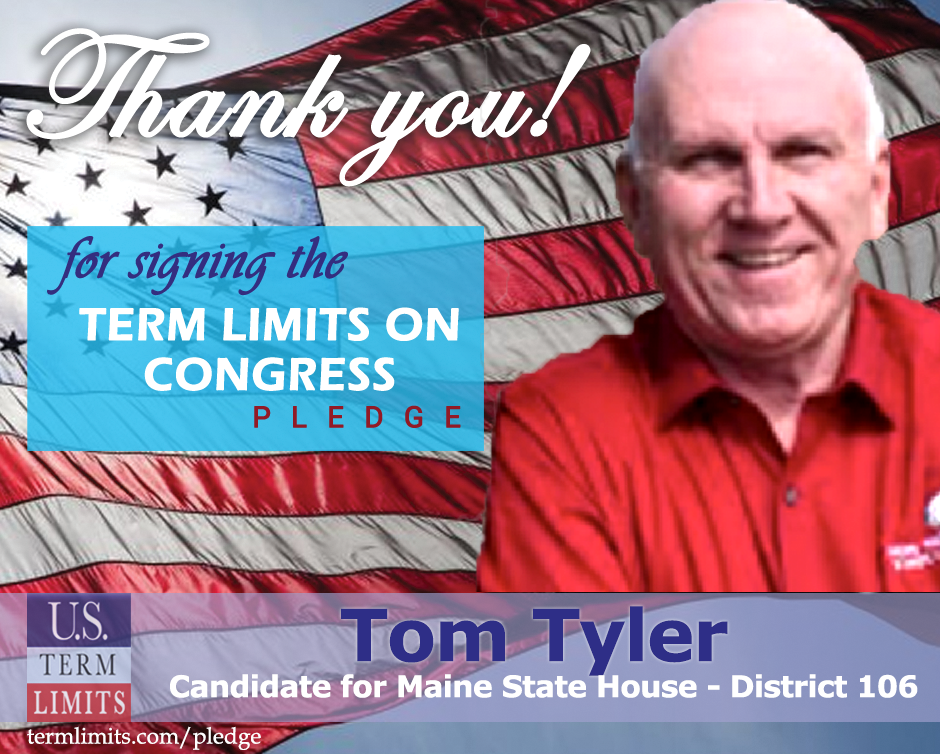 Augusta, ME – U.S. Term Limits (USTL), the leader in the national, non-partisan movement to limit terms for elected officials, is gathering support from state lawmakers across the nation. Its mission is to get 34 states to apply for an amendment proposal convention specific to term limits on Congress. Maine state house candidate, Tom Tyler (district 106) has committed support for term limits on Congress by signing the Term Limits Convention pledge. Previously, candidate Barbara Bagshaw also signed the pledge.