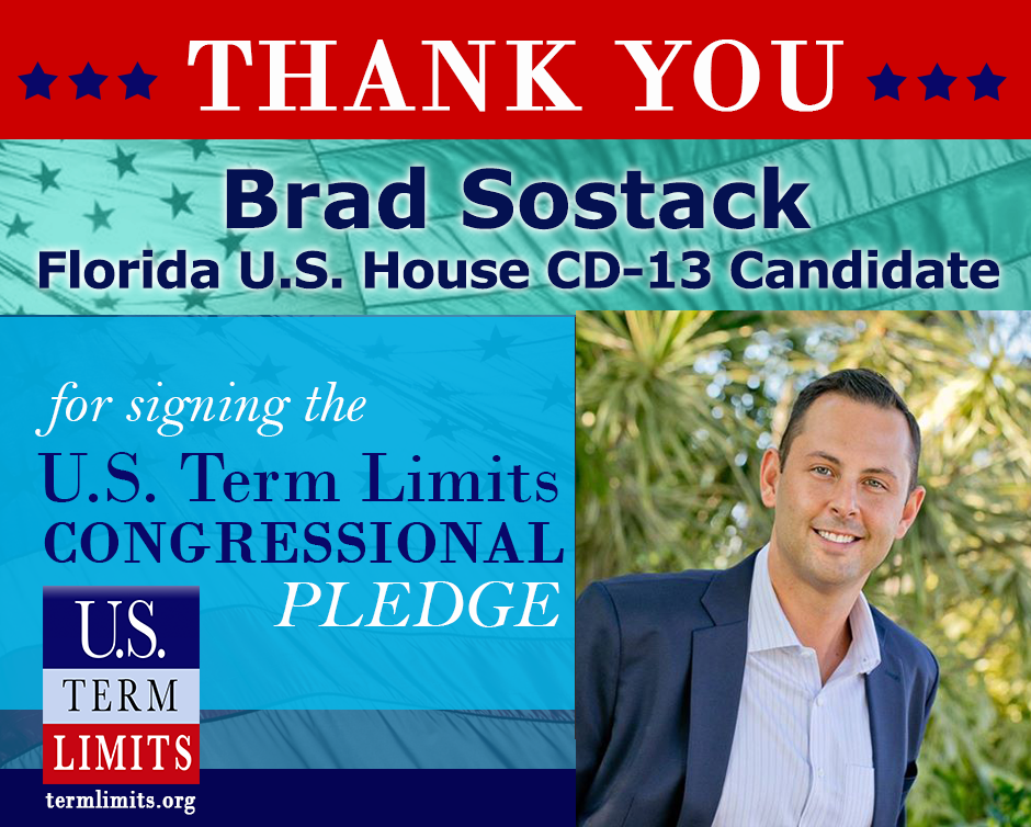 The U.S. Term Limits amendment pledge is provided to every announced candidate for federal office. It reads, “I pledge that as a member of Congress, I will cosponsor and vote for the U.S. Term Limits amendment of three (3) House terms and two (2) Senate terms and no longer limit.” The U.S. Term Limits constitutional amendment has been introduced in both the U.S. Senate by Senator Ted Cruz and his colleagues (SJR3) and the U.S. House by Representative Ralph Norman (HJR12).