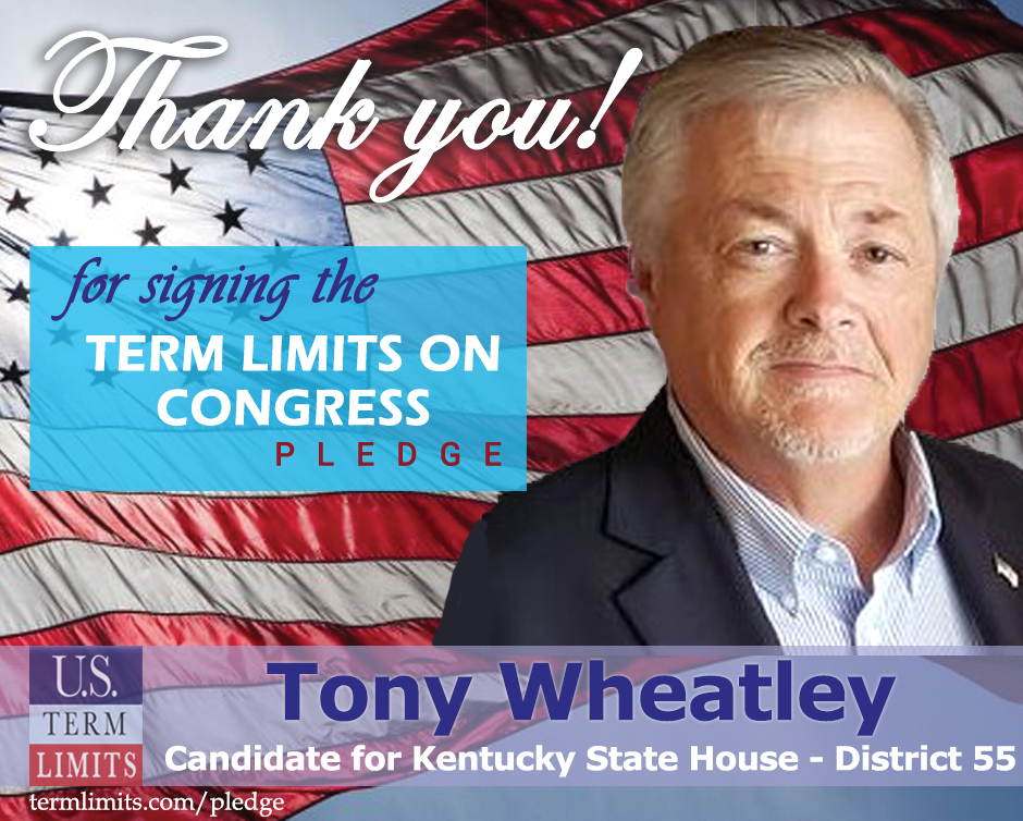Lexington, KY – U.S. Term Limits (USTL), the leader in the national, non-partisan movement to limit terms for elected officials, is gathering support from state lawmakers across the nation. Its mission is to get 34 states to apply for an amendment proposal convention specific to term limits on Congress. Kentucky state house candidate, Tony Wheatley (district 55), has committed support for term limits on Congress by signing the Term Limits Convention pledge. Wheatley is the first signer in this race.